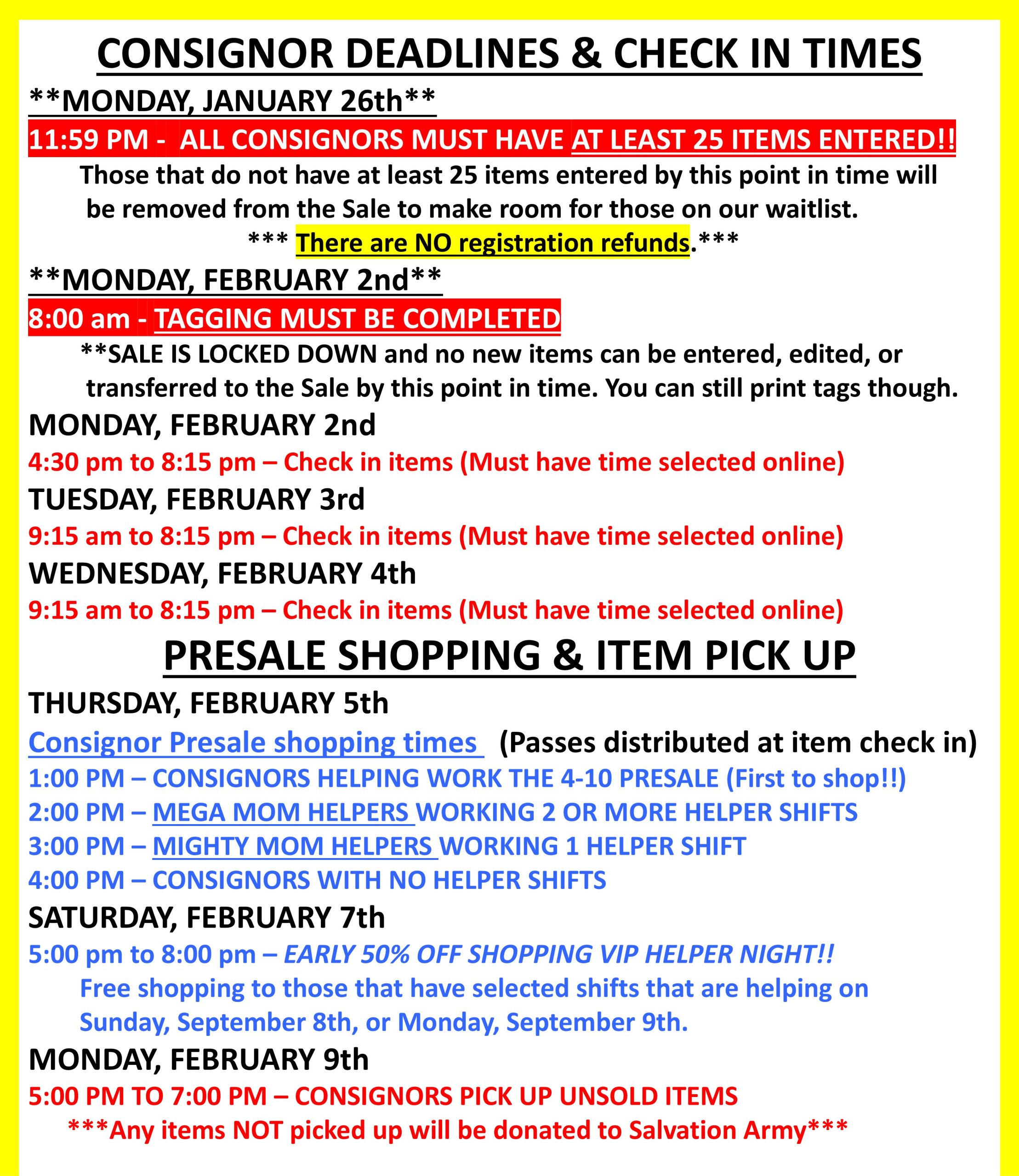 Consignor Dates/Deadlines/Pre Sale shopping